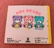 ABC Bears are a group of three bear Sanrio characters who debuted together in the 1980s, likely 1984. They mostly appeared on stationary products.