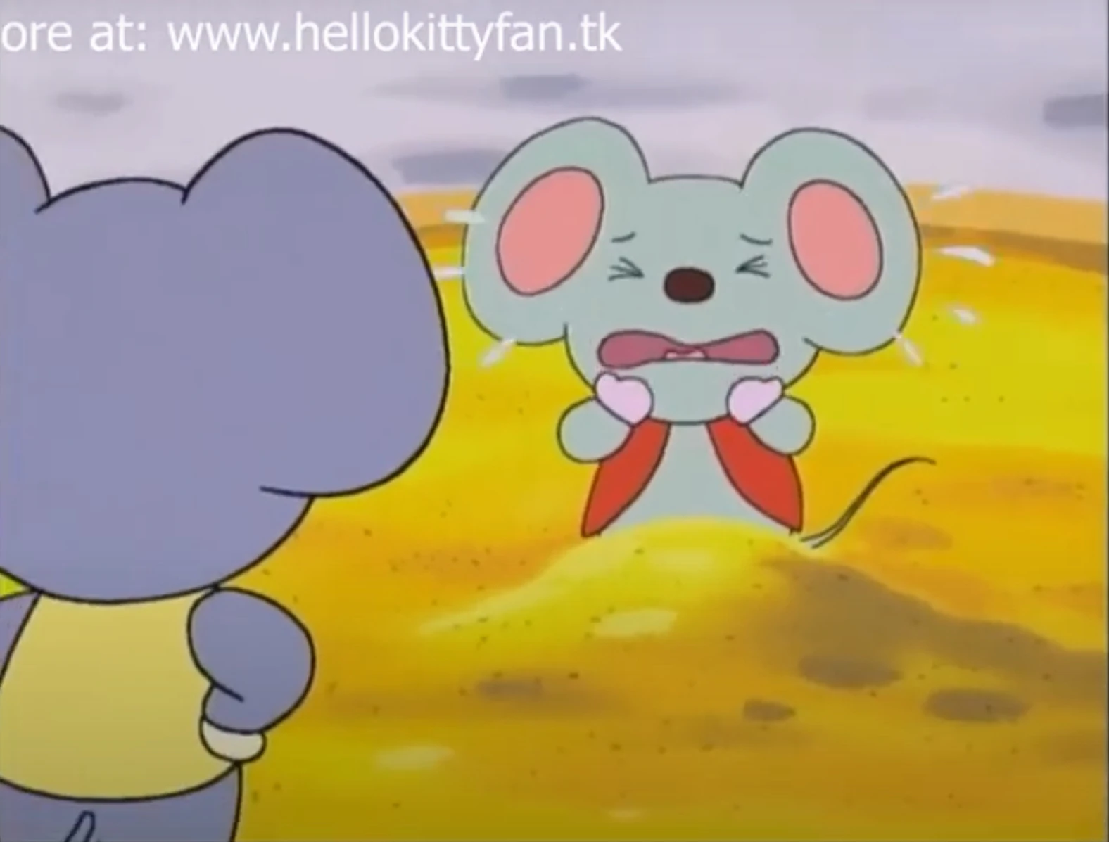 They arrive at Rainbow Park and are dismayed to find it completely colorless. Shortly, three adult mice (one red, one yellow, one blue) arrive and paint the park red, yellow and blue. The girls want to help but the mice won't let them. Once the park is decorated, red, yellow and blue mice children run in and play on the playground. Kitty notices something strange - the children only play on the toys that match their color. The mice explain that the kids are only allowed to play at the colors they match- other colors are not allowed to mix together.