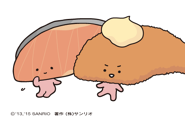 Agemi-kun is a character created in collaboration between Sanrio and KFC Japan. They are a breaded and fried salmon fillet originally from Hokkaido.[1] They wear a dollop of tartar sauce on their head and they think it's fashionable.[2]