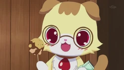 In Jewelpet, he is one of the Jewel Eight and is initially an antagonist under Dian's dark magic, before being returned to normal by Ruby and Rinko Kougyoku.