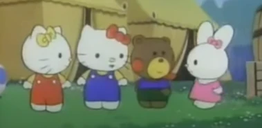 A scene replacing Cathy in Hello Kitty and Friends from VHS to DVD releases, by Fifi, another one of Hello Kitty's friends
