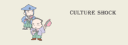Culture Shock (カルチャーショック, Karuchā Shokku) is a pair of Sanrio characters who are human samurai named Yumenosuke and Tetsunoshin. Towards the end of the Edo era, the two travel to Paris to experience the "Culture Shock" of a lifetime, as well as learning what they can about western culture to bring back to Japan.