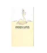Frendy Ways consists of a cream-colored character resembling the Loch Ness Monster and a small yellow bird that rides on their head, in a toy sailboat. The Loch Ness Monster may be in love with the bird, considering the "Love at first sight is a moment to cherish" blurb and the heart pictured next to their head.
