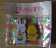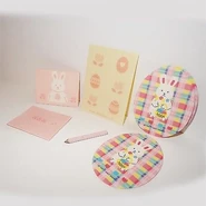 In 1991, Sanrio released a design collection for Easter. Various goods were produced, including stationary and plush toys. The collection continued to be produced annually until the mid 90s. The name of the collection may be Happy Easter, but the official name is currently unknown.