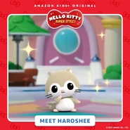 Haroshee is a character that debuted in Hello Kitty Super Style! and is a flying squirrel. He is curious and loves food, having a soft spot for smoothies. In the show, he is Hello Kitty's best friend and accompanies her during her many misadventures.