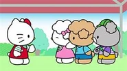 - Unlike its predecessor Growing Up With Hello Kitty, Hello Kitty & Friends: Let's Learn Together was not drawn in the animation style used for Hello Kitty's Paradise, but in the exact offical Sanrio artwork, and therefore Hello Kitty and other characters are depicted as mouthless.