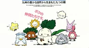 The characters are young spirits that were born from the natural elements that make up the island of Kyushu: wind, trees, light, water, clouds, flowers, stones, stars, and fire. The Wind Child is the main character, created to represent JR Kyushu's stance of wanting to foster kindness in the community together with the local people.