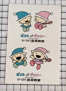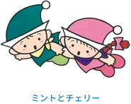 Mint and Cherry (ミント&チェリー) are a duo of characters that debuted in the 1980s. According to Shinkyo Gakki (新響楽器), an official Yamaha music education provider in Japan, the characters were created and designed by Sanrio in collaboration with Yamaha Music Foundation. They appeared in Yamaha Music childrens workbooks, as well as on school supplies, stationary, and other merchandise. They were phased out in the 1990s and replaced by the characters March and Waltz.