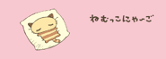 Nemukko Nyago (ねむっこにゃ~ご, Nemukko Nya ~ go) is a cat boy character by the Japanese company Sanrio. Nyago is a sweet tabby cat born in Japan. His favorite activity is sleeping, and his most cherished possession is his supersoft, cloud-like cushion. He is very easygoing and tries not to worry too much about the small things in life.