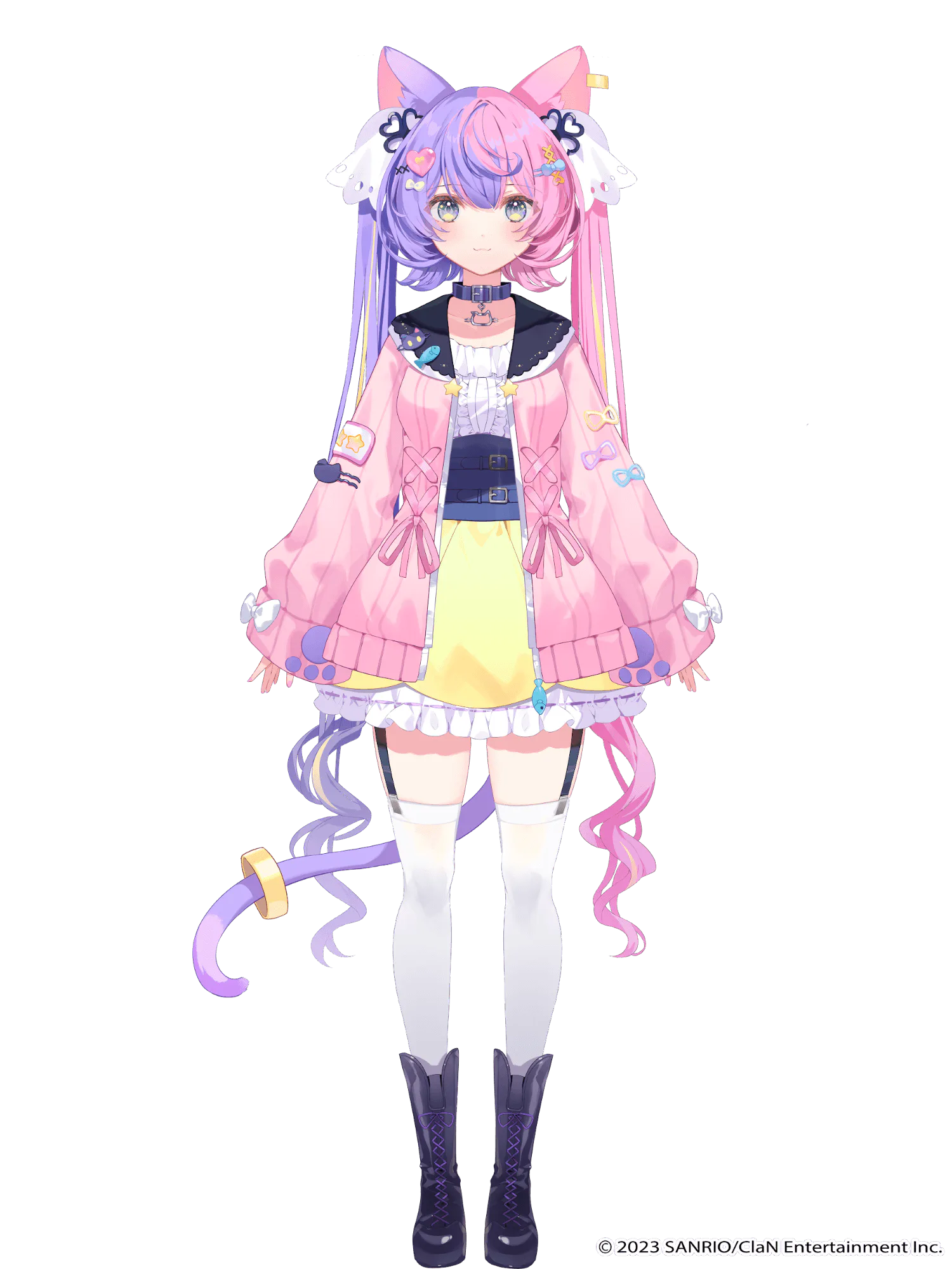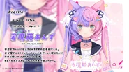 Nyamafuji Anzu (若魔藤あんず) is a Vtuber character who debuted on December 1st, 2023 as a part of the Nyantasia! project. She is described as being stoic in self improvement. She wants to be a master at fashion and games, but she gets scared easily. In her cat form, she is a pink-and-purple tortoiseshell cat. Her charm point is her glossy cat hair.
