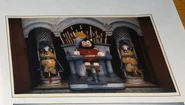 In the center of Sanrio Phantasien's Germany-inspired square was a clock tower, where an animatronic Peter Von Kat would entertain guests. A cartoon version of his design appeared on various goods which were likely exclusively sold at Phantasien.