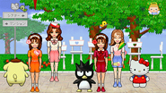 - The main characters are Hello Kitty, Pompompurin, and Badtz-Maru, however Kiki and Lala, and Jimmy from the Patty and Jimmy duo appear.