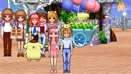 The game's subscription service was a rare and ambitious for the time; basically, boiling down to paying for the 500-yen subscription though Sanrio Wave or having a Nifty ID, downloading the game to install it on your computer, and making an account to play. There was also a free trial with limited access. If you joined you got to earn the in game currency apples, and participate in various events, such as the Dark Event Park taking place in the amusement park, the Character Dice Event taking place in Kitty's Palace, and the various other events like snowman contests, birthdays, more dice events, and many others; After playing some of the event mini games, you would win the pseudo-currency points by participating and using them to get items.