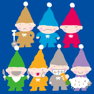 Seven Silly Dwarfs (セブンシリードワーフ, Sebun Shirī Dowāfu) are a group of dwarf characters from the Japanese company Sanrio. They are seven simple little friends who have very different personalities but get along very well. They share a love of flowers and animals, blue skies, and good food.