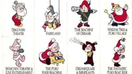 The Puros (ピューロ) are a group of Sanrio characters originally created for Sanrio Puroland. According to the official lore and setting of the theme park upon its opening in 1990, the eight Puros (a portmanteau of clown and pure) came to Earth from the star of Puro, which had lost harmony. A large Tree of Wisdom was planted in the center of the village that the Puros created, and Puroland expanded from there. This story became the central pillar of the theme park. The Puros appeared often in early Sanrio Puroland merchandise, marketing, and in the park's parades, but their presence is less prominent there today.