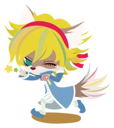 Trichronika is a musical band made up of three male Sanrio characters. Band Trichronika is made of three boys; A boy is an unknown animal named Shu☆zo (シュウ☆ゾー), but his name used to be Shu, he was before the leader of band Amatelast (アマテラスト Amaterasuto) 20 years ago with Rom, from ShinganCrimsonZ 20 years later after they were broke up, and twin boys unknown animals named Kai (Older Twin Brother) (カイ) and Riku (Younger Twin Brother) (リク). Shu☆zo is playing on his guitar, which is called Gold Mechanical Clock (黄金機械式時計 Kogane Kikaishiki Tokei). Kai is playing on his drums, which are called SGKD or Super Ganbari Kai Drums (スーパー・ガンバリ・カイ・ドラム Suupaa Ganbari Kai Doramu). And Riku is playing on his bass, which is called SHRB or Super Hanikami Riku Bass (スーパー・ハニカミ・リク・ベース Suupaa Hanikami Riku Beisu).